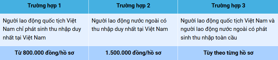 Phí dịch vụ hoàn thuế TNCN theo từng trường hợp như sau: